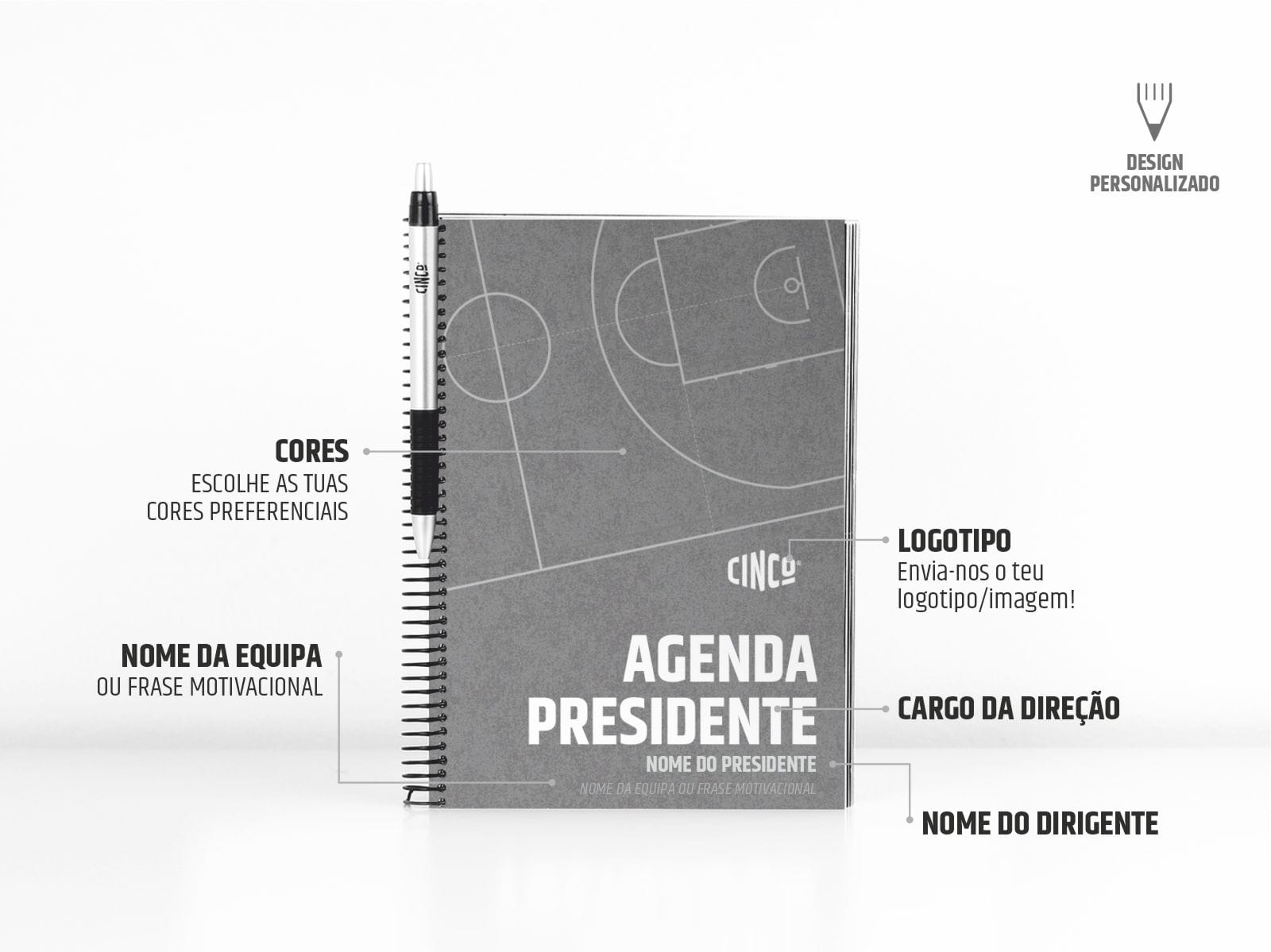Esta Agenda Direção foi especialmente concebida para cargos de direção e coordenação. Com 212 páginas, inclui 1 Planning anual, páginas de registo de jogadores, páginas para anotações e mais layouts de organização para te ajudar a elevar o teu clube a outro nível. Versão A5 e A4 disponíveis, capas podem ser totalmente personalizada com o nome, o cargo, logo da equipa, cores preferenciais e frase motivacional. Encomenda já e desenha o teu sucesso!