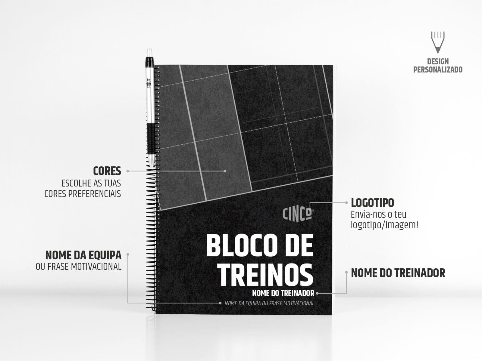 Este Bloco de Treinos com 150 unidades de treino vai ajudar-te a planear cada sessão de treino com o máximo detalhe. Versão A5 e A4 disponíveis, capas podem ser totalmente personalizadas com o nome do treinador, logo da equipa, cores preferenciais e frase motivacional. Encomenda já e desenha o teu sucesso!