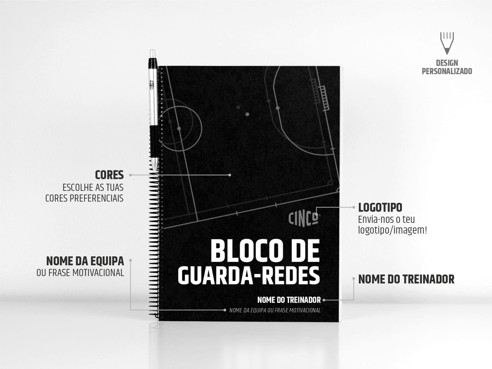 Este Bloco Guarda Redes com 150 unidades de treino vai ajudar-te a planear cada sessão de treino dos teus Guarda-Redes com o máximo detalhe. Versão A5 e A4 disponíveis, capas podem ser totalmente personalizadas com o nome do treinador, logo da equipa, cores preferenciais e frase motivacional. Encomenda já e desenha o teu sucesso!