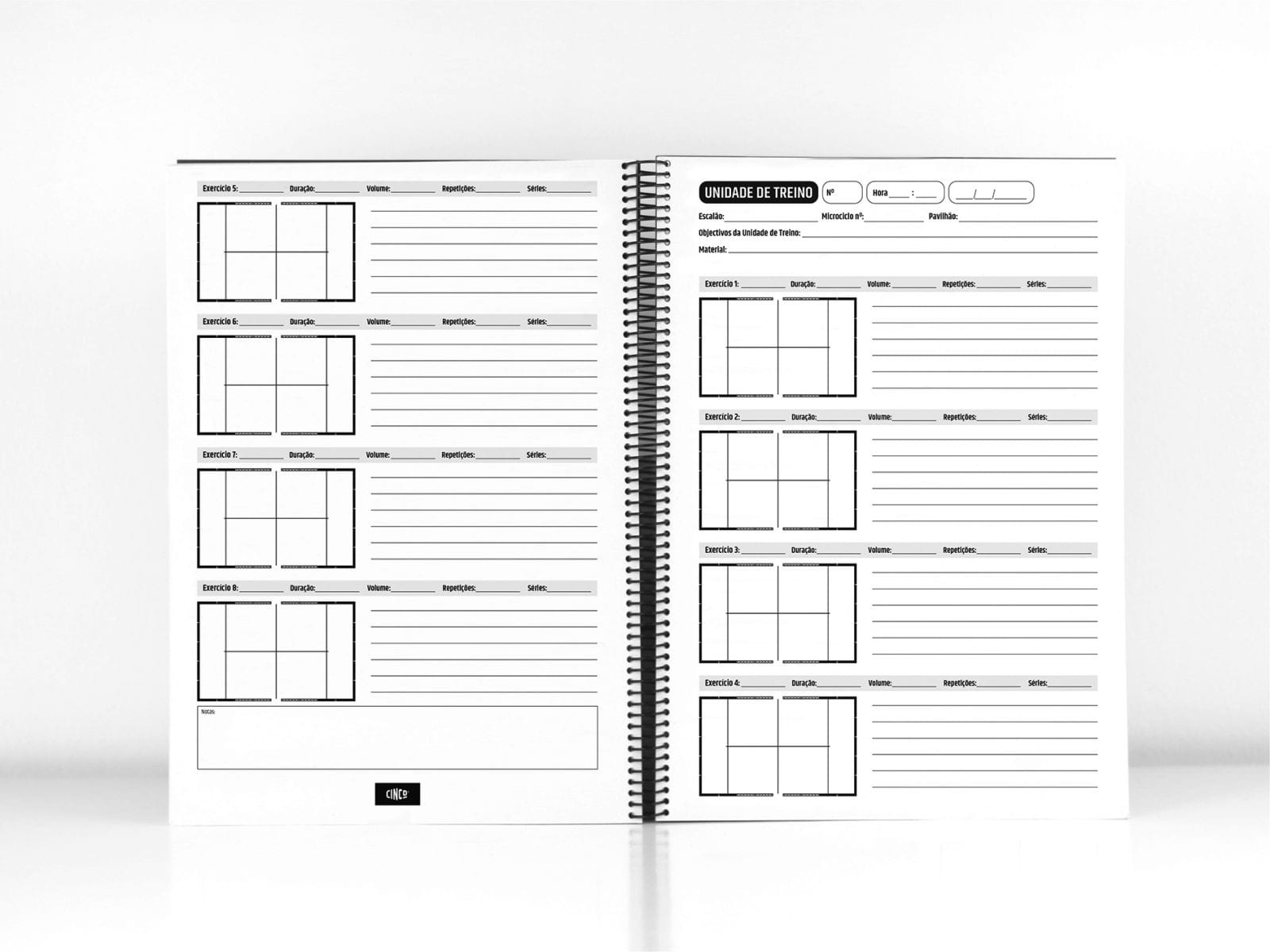 – Bloco Treinos: A5 14,8x21cm | A4 21×29.7cm | +/-2cm de espessura