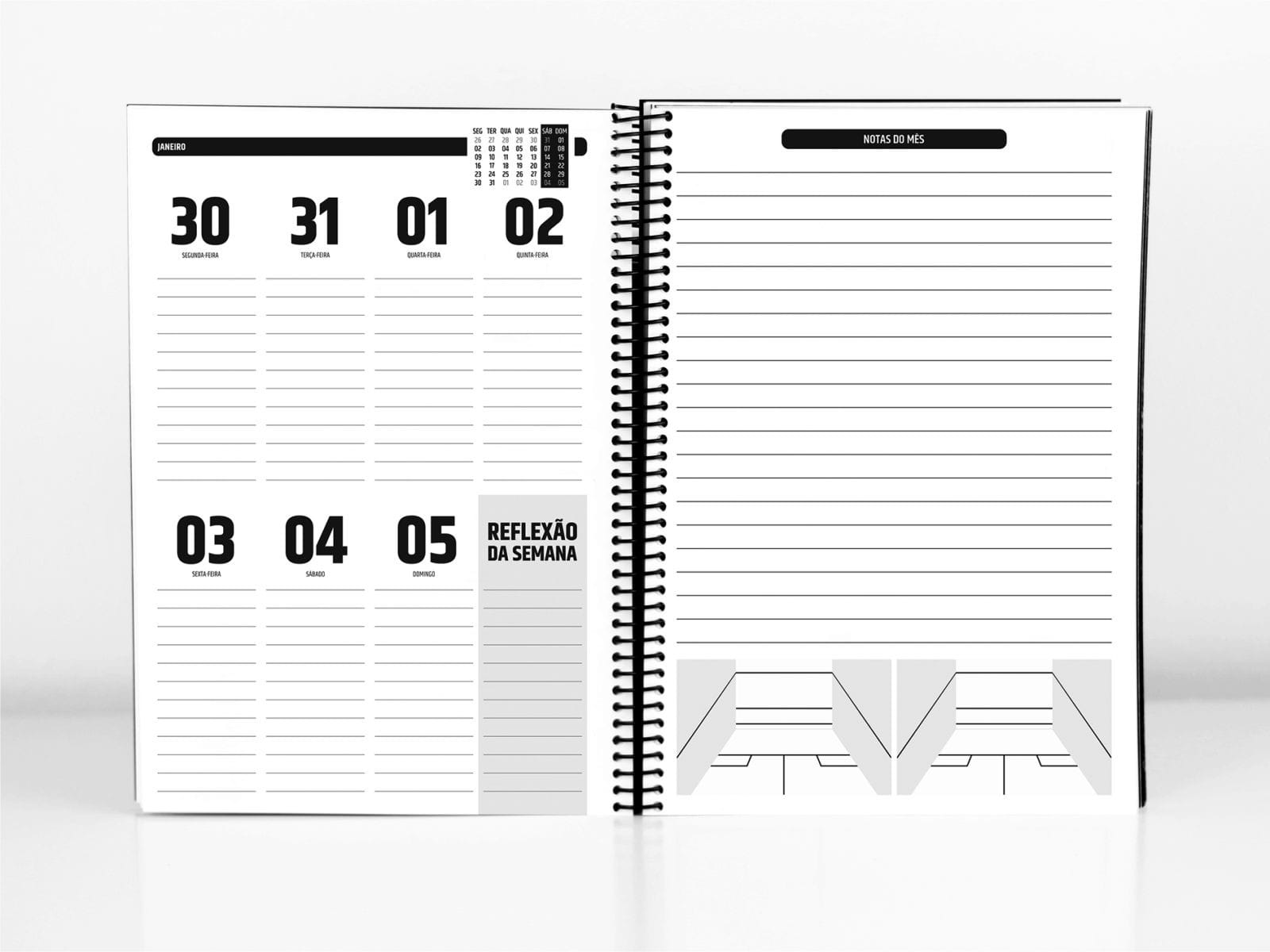– Agenda: A5 15x21cm +/-2cm de espessura