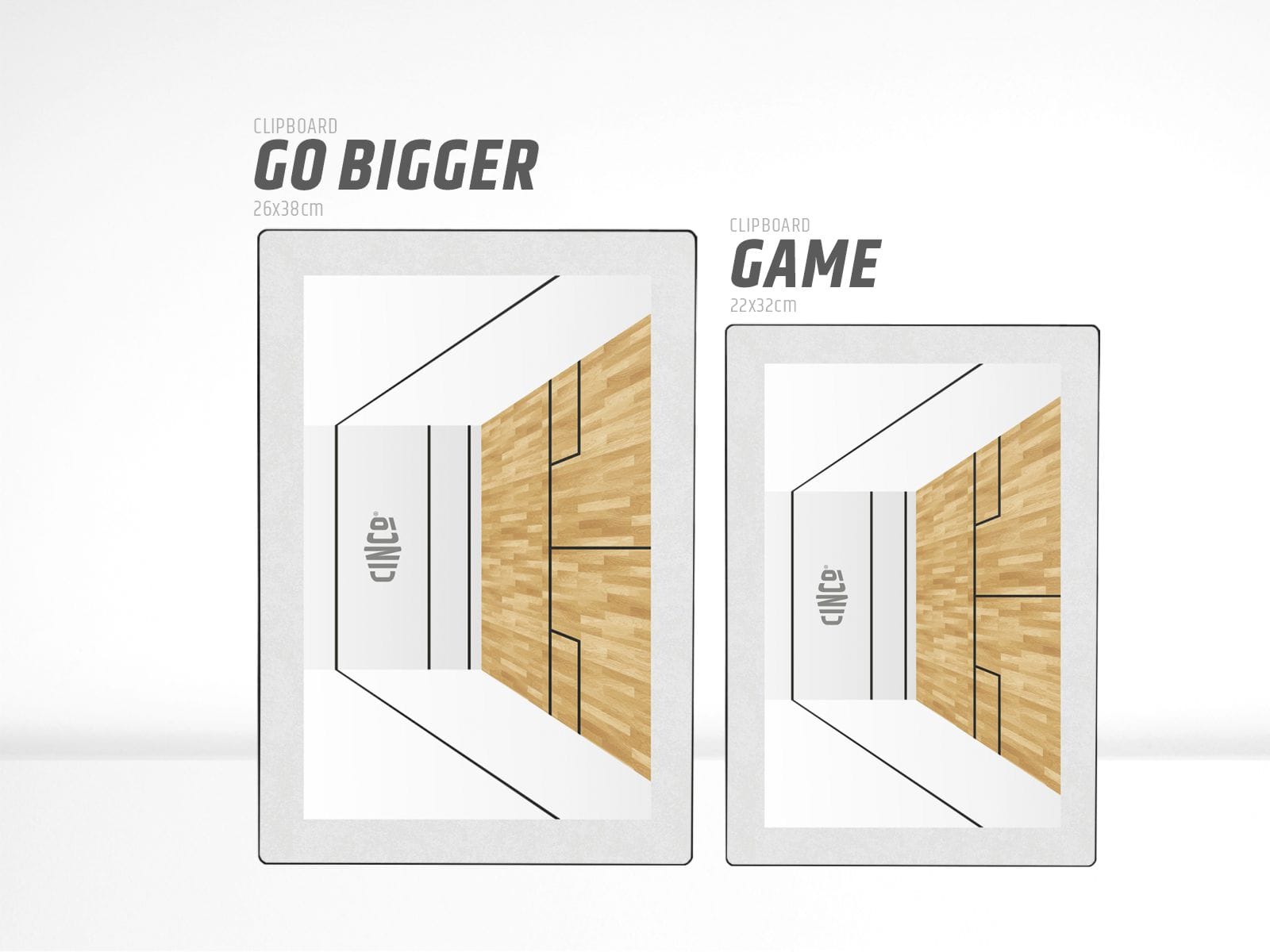 – Clipboard: GAME (22x32cm) | GO BIGGER (26x38cm) | +/-0.4cm de espessura;