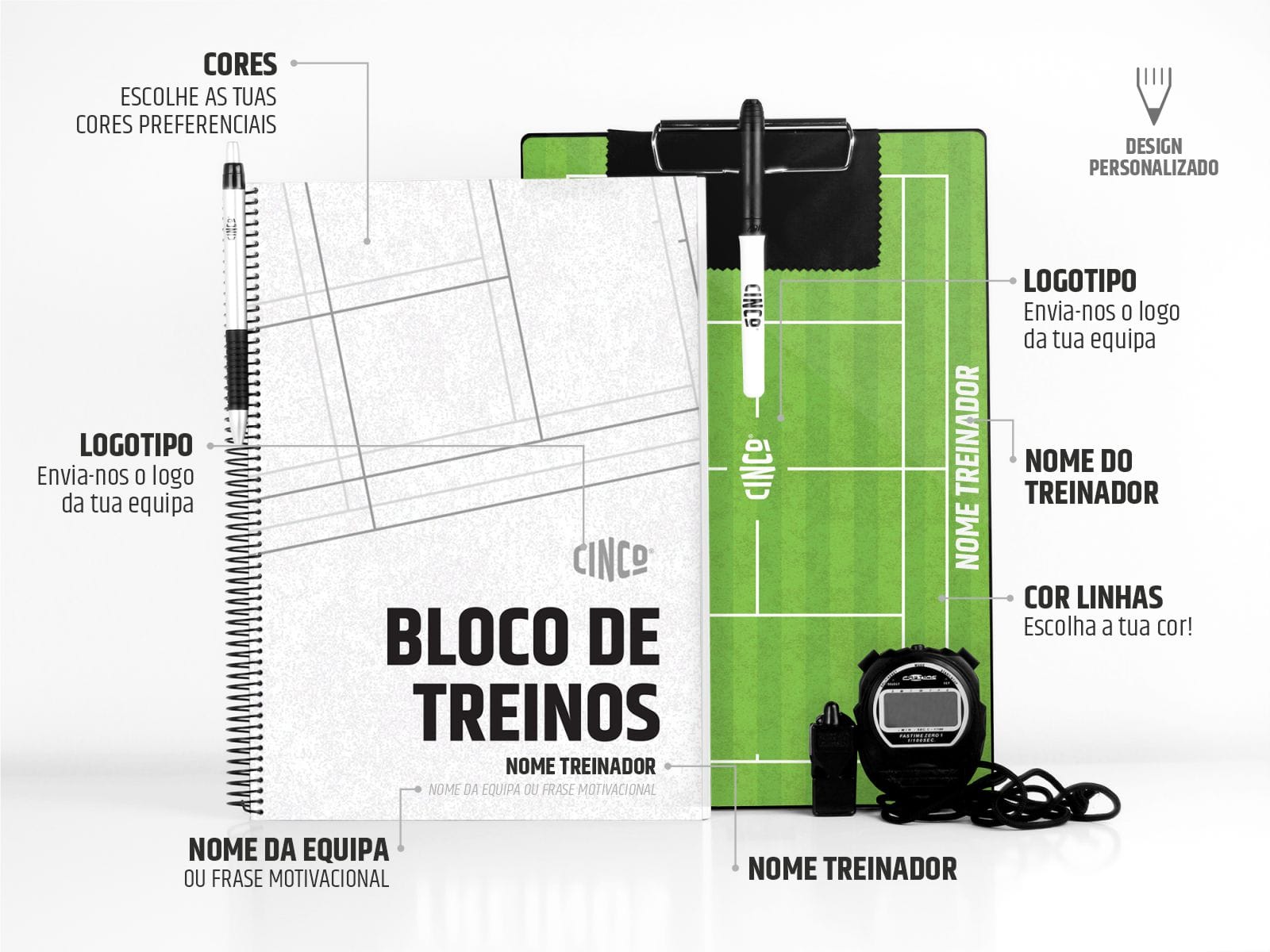 Usufrui de um desconto especial na aquisição deste Kit face à compra individual dos produtos e dá um Big Boost ao teu treino com este Boostkit STARTER. Escolhe a tua Clipboard, GAME (22x32cm) ou GO BIGGER (26x38cm), + 1 Bloco de Treinos A5 ou A4 de 150 unidades. Todos os produtos podem ser totalmente personalizados com o nome do treinador, logo da equipa, cores preferenciais e frase motivacional. Encomenda já e dá um BOOST ao teu sucesso!