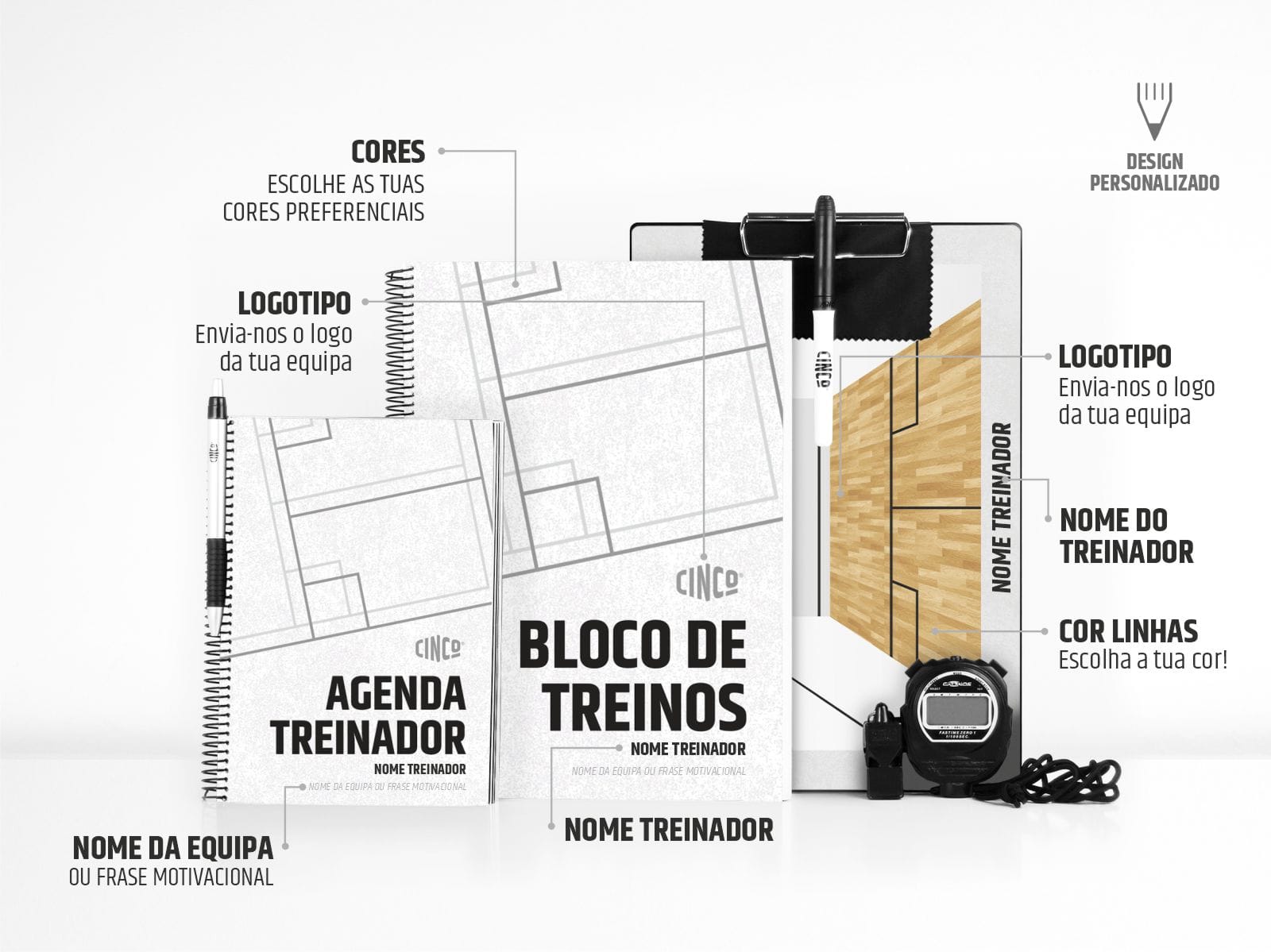 Usufrui de um desconto especial na aquisição deste Kit face à compra individual dos produtos e dá um Big Boost ao teu treino com este Boostkit UPGRADE. Escolhe a tua Clipboard, GAME (22x32cm) ou GO BIGGER (26x38cm), + 1 Bloco de Treinos A5 ou A4 de 150 unidades + 1 Agenda de Treinador A5 + 1 Apito Fox40 + 1 Cronómetro Fastime. Todos os produtos podem ser totalmente personalizados com o nome do treinador, logo da equipa, cores preferenciais e frase motivacional (excepto Apito e Cronómetro). Encomenda já e dá um BOOST ao teu sucesso!
