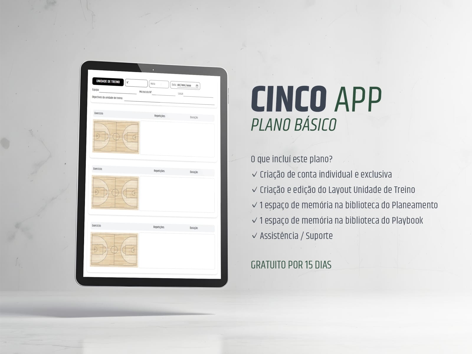 O Plano Básico da CINCO APP é a forma perfeita de testares e descobrires o poder da gestão tática digital. Concebido para te dar uma base sólida, este plano permite-te digitalizar o essencial da tua equipa sem qualquer compromisso financeiro. Usa menos papel e dá o primeiro passo rumo a uma gestão mais organizada.