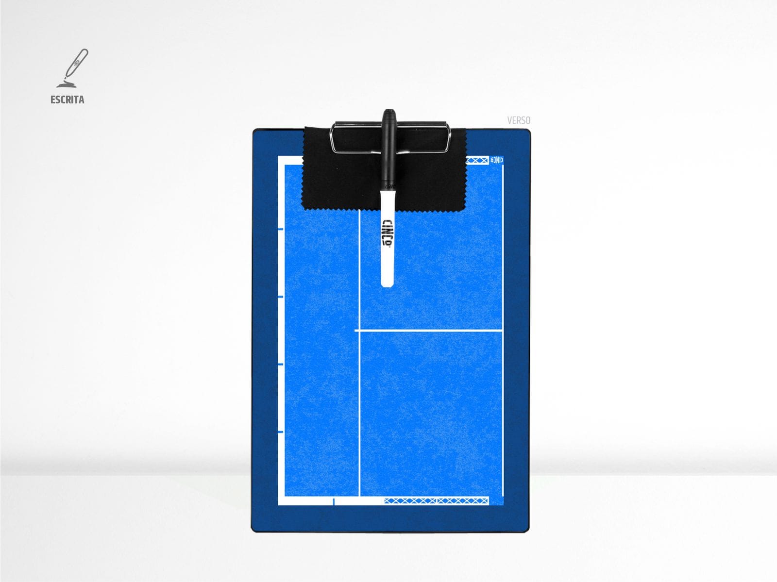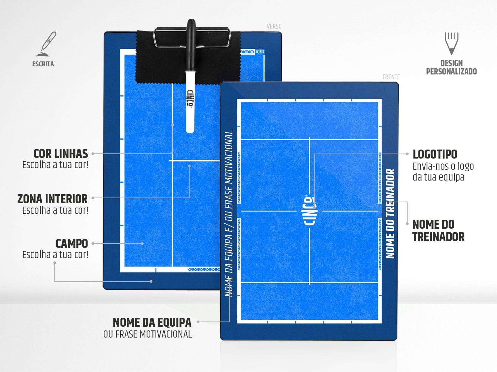 Esta Clipboard de duas faces foi desenvolvida para acompanhar todos os teus treinos e jogos. Com dois tamanhos disponíveis, POCKET (15,5x22cm), GAME (22x32cm) e GO BIGGER (26×38cm) a Clipboard pode ser totalmente personalizada com o nome do treinador, logo da equipa, cores preferenciais e frase motivacional. Encomenda já e desenha o teu sucesso!