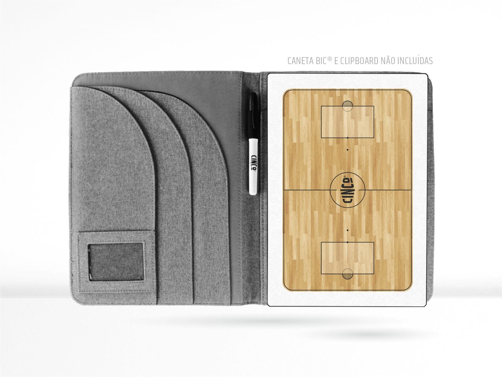 A nossa Coverboard é uma pasta elegante com acabamento em microfibra macia. No interior inclui um bloco amovível com 20 folhas, 3 bolsos com pala, porta-cartões e porta-canetas. Pode também ser usada para proteger a tua Clipboard “GAME” 22X32CM. A caneta BIC®️ e a Clipboard não estão inlcuídas. Protege as tuas vitórias!